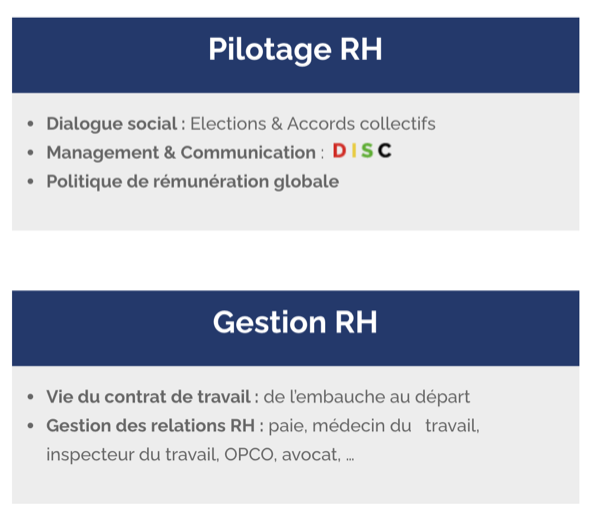 Exemple, une externalisation sur un ou plusieurs thèmes déterminés : formation, gestion des contrats, tenue des entretiens de parcours professionnels, …
